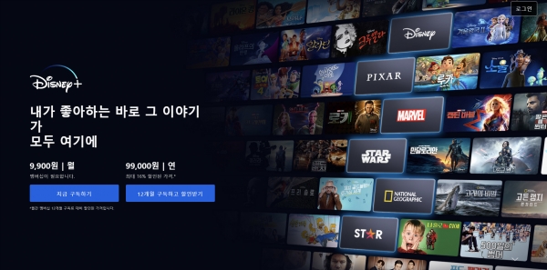 12일, 월트디즈니 컴퍼니 코리아는 한국에서 '디즈니+'를 공식 출시하며 서비스 제공을 시작했다. 디즈니+는 디즈니(Disney), 마블(Marvel), 픽사(Pixar), 내셔널지오그래픽(National Geographic), 스타워즈(Star Wars), 스타(Star) 등 세계적으로 유명한 콘텐츠를 보유한 것을 강점으로 하는 온라인 스트리밍 서비스이다.