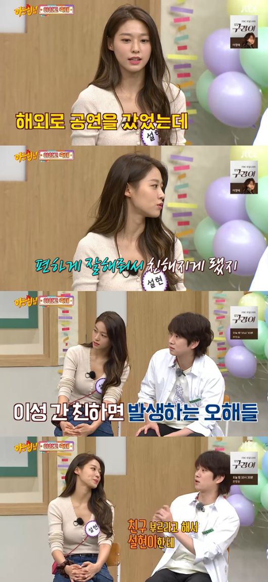 이에 장동민은 “남자, 여자가 친하게 지내면 오해를 받지 않느냐”고 물었고, 설현은 “김희철은 여자친구가 굉장히 많다”며 괜찮다고 답했다.