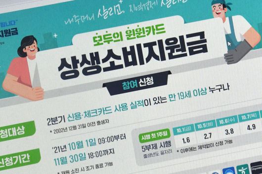 [스타인뉴스 김학철 기자] 지난 10월분 상생소비지원금 캐시백이 15일 지급된다. 전체 상생소비지원금 참여자 가운데 169만명이 캐시백 월 한도인 10만원을 받았다.