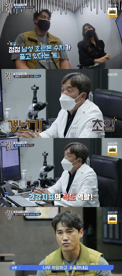 20일 방송된 KBS 2TV '살림하는 남자들 시즌2'에서는 홍성흔이 갱년기 검사를 진행한 장면이 전파를 탔다.