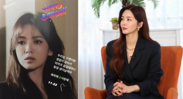 박솔미는 22일 자신의 SNS를 통해 "HAPPY BIRTHDAY"라는 메시지와 함께 송혜교의 사진을 게재했다.