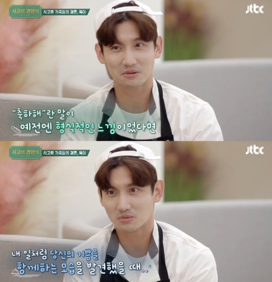 이어 차인표는 최강창민에게 "부인의 어떤 점이 가장 마음에 들었냐"고 물었다. 최강창민은 "내 일이 아닌 타인의 즐거운, 기쁜 소식을 들었을 때 '축하해' 그 정도였다. 어느 순간 내 일처럼 기뻐하고 같이 저도 동요하고 있더라"라며 특히 밝은 기운을 결혼 이유로 꼽았다.