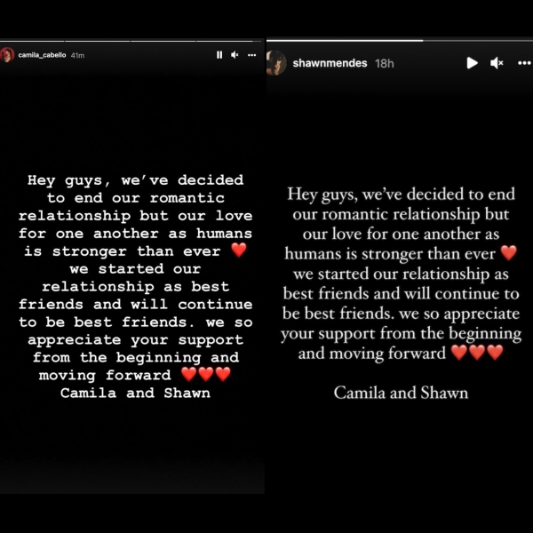 [스타인뉴스 최민희 인턴기자] 세간의 관심을 끌던 ‘카멜라 카베요’와 ‘션 멘더스’ 커플이 인스타그램 스토리로 결별을 선언했다. 그들은 2년간 연인 관계를 유지하며 각자의 팬들에게 찬사를 받았고, ‘Señorita’라는 노래를 발매하며 전세계적으로 큰 인기를 끌었었다.