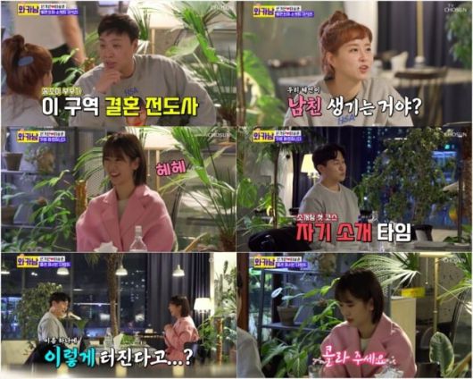 이후 강혜연 앞에 키 180cm에 훤칠한 외모를 지닌 신홍명 변호사가 등판, 강혜연은 눈을 떼지 못했다. 신홍명 변호사는 자기 소개 후 “법적인 문제 있으면 편하게 말 해달라”는 농담을 건네 강혜연을 빵 터지게 만들었다.