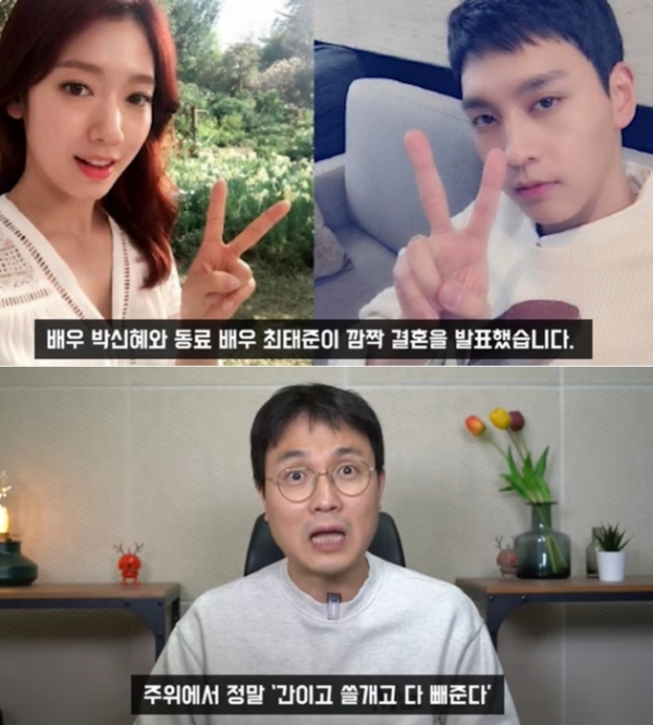 23일 연예기자 출신 유튜버 이진호는 '혼전임신 결혼…최태준 ♥박신혜 꽉 잡은 비결'이라는 제목의 영상을 유튜브에 업로드됐다.