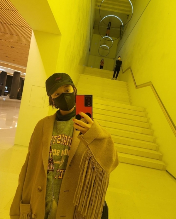 사진 속 황정음은 리움미술관에서 마스크를 쓰고 거울에 비친 자신의 모습을 셀카로 찍고 있다. 둘째를 임신한 황정음의 볼록한 배가 눈길을 끈다.