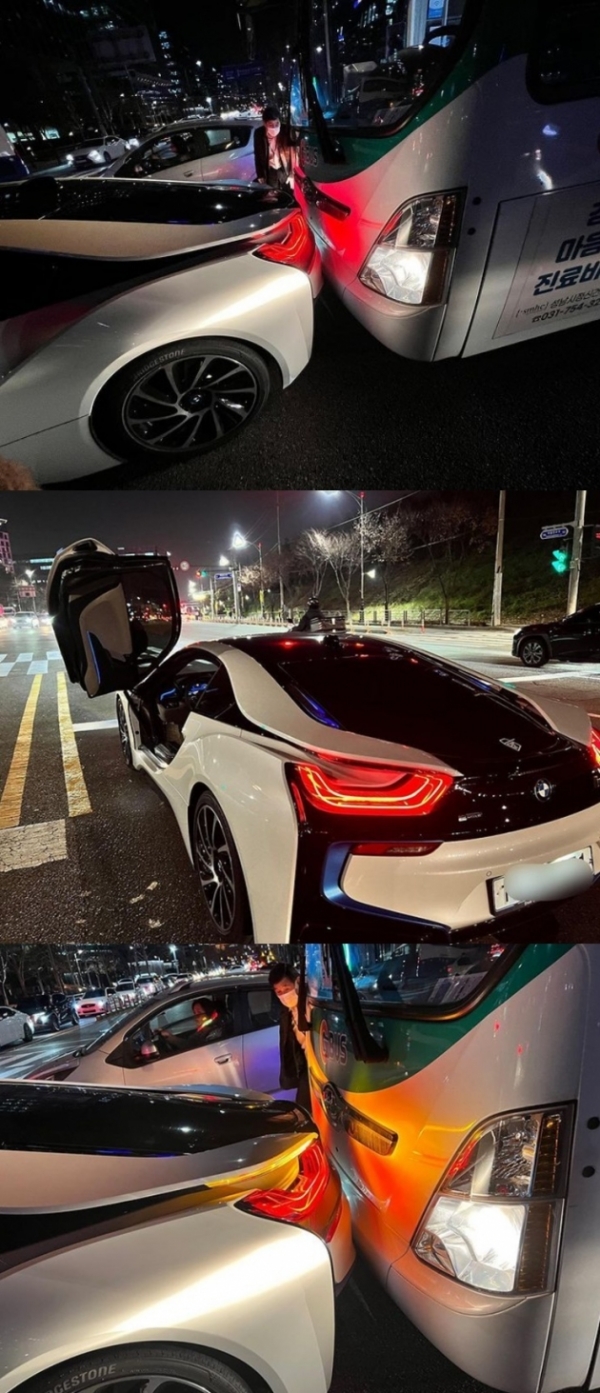 또 버스가 팝핀현준의 후미를 추돌한 사고현장 사진을 공개했다. 팝핀현준은 '액땜' '팝핀' '슈퍼카'라는 해시태그를 달았다.