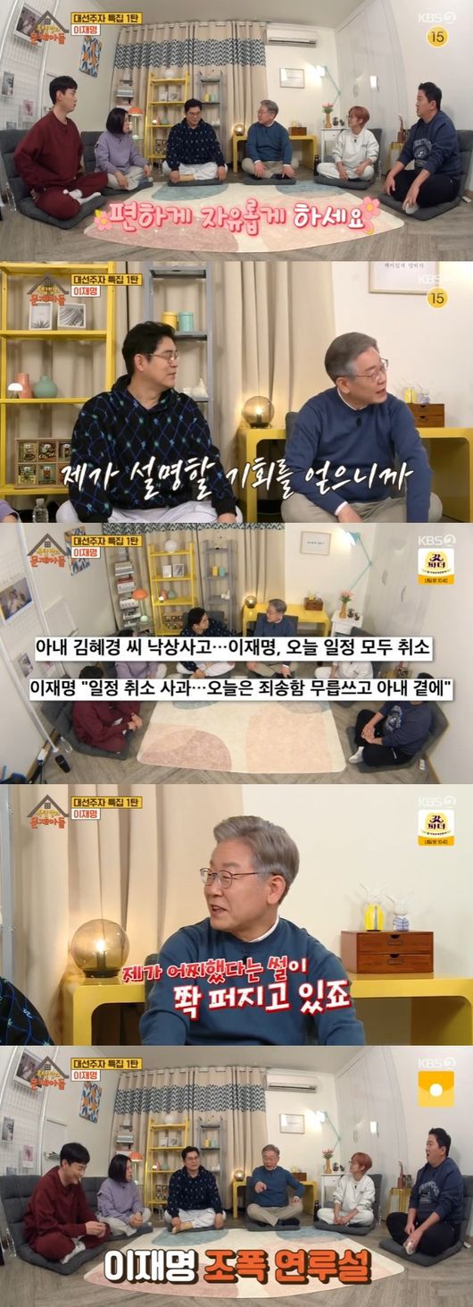 MC들은 이재명에게 "얼마 전 사모님이 몸이 안 좋았는데 많이 괜찮아졌냐"며 최근 김혜경 씨의 낙상사고를 언급했다.