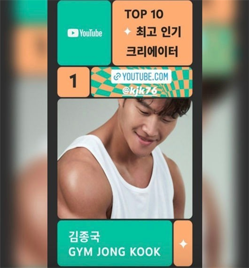 김종국은 3일 자신의 인스타그램에 한 장의 사진과 함께 "감사합니다. 더 열심히 하겠습니다 #유튜브 #유튜브코리아 #2021 #최고인기크리에이터 #짐종국 #1등"이라는 글을 게시했다.