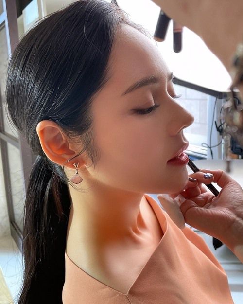 한가인, 방부제 미모 과시...광고 촬영 위해 메이크업 받는 모습 공개