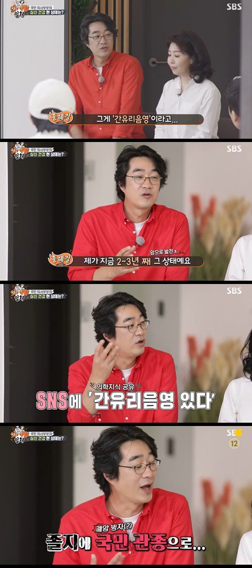 이때, 여에스더는 “남편은 폐암 공갈범”이라면서 “폐암이 아닌데 자꾸 폐암이라고 한다”며 답답해했다. 홍혜걸은 “검진하다가 폐에서 간유리 음영이 나와, 보통 90프로 이상 암세포가 있는데 암으로 발전되지 않은 경우, 2~3년 됐다”고 답했다. 그러면서 “이후 의학지식을 올렸더니 폐엄 걸렸다고 포털 사이트에 올라갔다, 국민 관종으로 욕을 먹었다”며 오해로 생긴 해프닝을 언급했다. 그래서 제주도에서 수양 중이라고. 속세와 거리를 두고 평화로운 일상으로 건강을 되찾는 중 이라 덧붙였다.