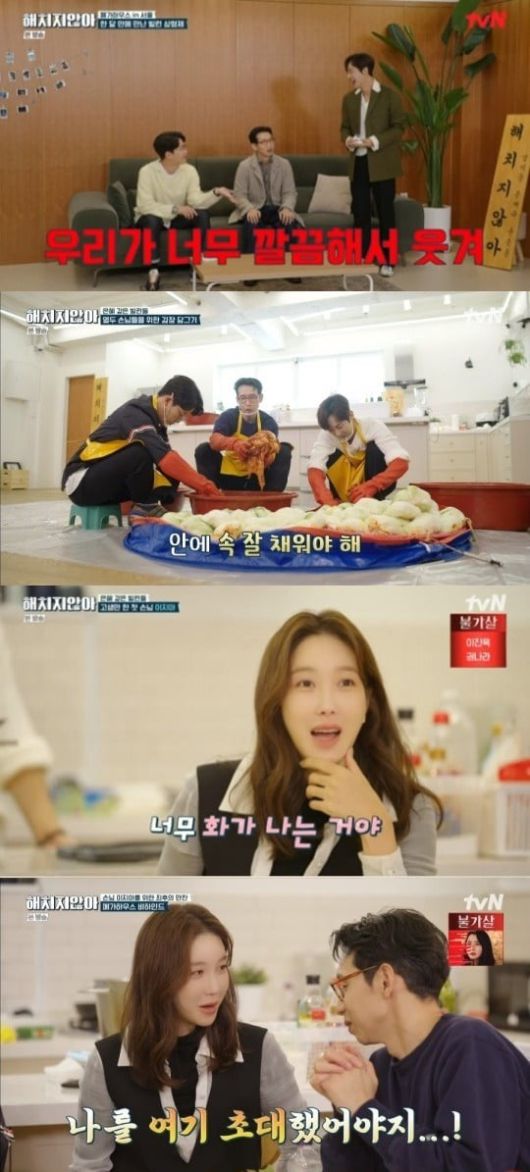 이어 세 사람이 김장을 완성하고 수육과 스테이크를 만드는 동안, '해치지 않아' 첫 손님이자 비운의 손님으로 꼽힌 이지아가 깜짝 등장했다. 아무것도 준비되지 않은 폐가하우스를 찾아와 벌레, 먼지들과 사투를 벌였던 이지아는 자신이 출연한 이후 발전한 폐가하우스를 보며 "화가 났다"고 너스레를 떨기도.