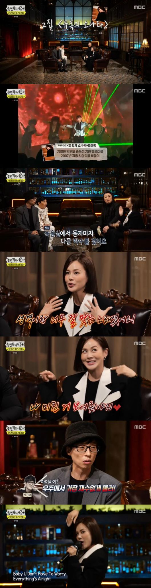 아이비는 ‘유혹의 소나타’, ‘A-ha’ 무대를 연달아 재현해 그 시절을 추억하게 했다. 유재석은 “아이비에게 댄스곡만 있는 게 아니”라며 ‘바본가봐’를 언급했다. “아이비의 가창력이 너무 안정적이라 립싱크라는 오해도 많았다”는 말에 아이비는 “최고의 찬사”라며 감사해 했다. 아이비는 감성 가득한 ‘바본가봐’ 무대로 어김없이 훌륭한 가창력을 보여줬다. “진짜 농담이 아니고 너무 잘한다”는 유재석의 감탄에 하하는 “이 형 이렇게 잘 안 하는데”라고 말했다. 아이비 역시 ‘도토페(도토리 페스티벌)’ 라인업에 이름을 올렸다.