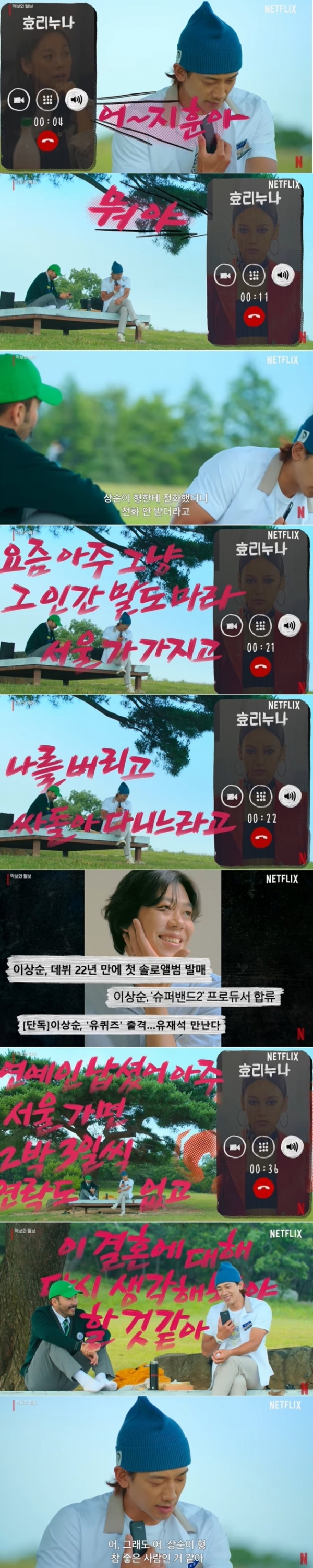 이후 전화를 받지 않은 이효리는 먼저 전화를 걸었고, 비는 "누나 안부차 전화 걸었다. 지금 경주에 와있는데 음악 얘기를 하고 싶어서 상순이 형에게 전화를 했는데 받지를 않는다"라고 말하자, 이효리는 "그 인간 말도 마라. 요즘 날 버리고 서울 가 가지고 싸돌아다니느라. 아주 뭐 솔로앨범 낸다. '슈퍼밴드' 한다. '유퀴즈' 나간다고 지금 아주 연예인 납셨다"라고 불만을 쏟아냈다.