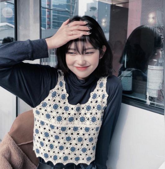 최준희는 앞머리를 내린 단발머리에 더 예뻐진 모습으로 환하게 미소짓고 있다. 회색 카디건에 목걸이로 사랑스러움을 더했다.