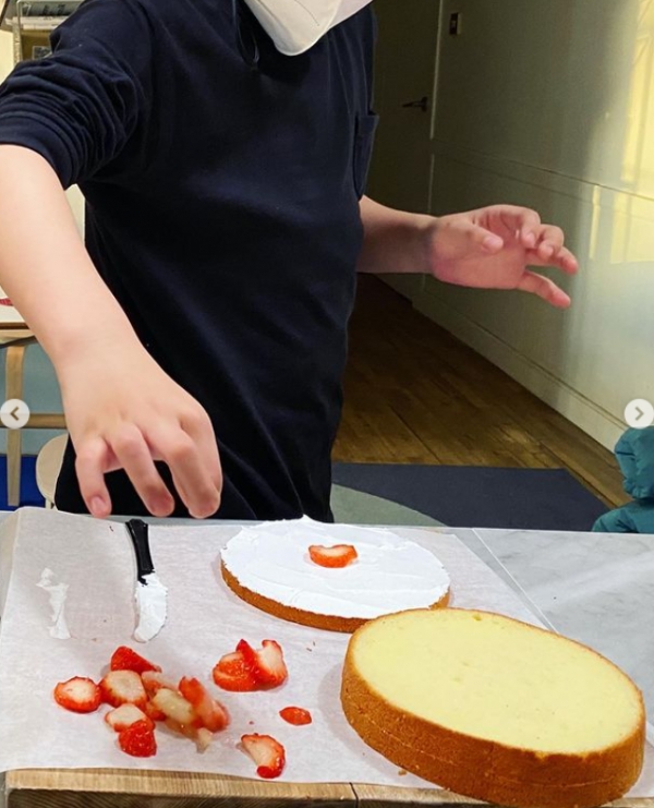 사진 속에는 이민정 아들 준후 군이 만든 케이크가 담겼다. 고사리 손으로 크리스마스 케이크를 만든 준후 군의 모습이 상상되기도.
