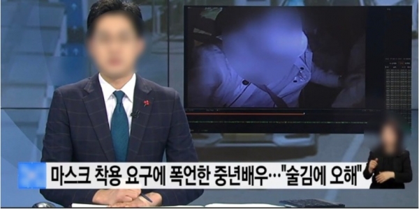 YTN은 22일 데뷔한 지 40년이 넘은 중년 배우 A씨가 마스크를 제대로 착용해달라고 요구하는 택시 기사에게 10분 가까이 욕설을 퍼부었다고 보도했다. 이와 함께 당시 택시 내부 블랙박스 영상도 공개했다.