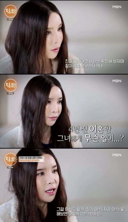 [스타인뉴스 김성기 기자] 국내 1호 트랜스젠더 연예인 하리수가 전 남편과의 이혼을 언급했다.