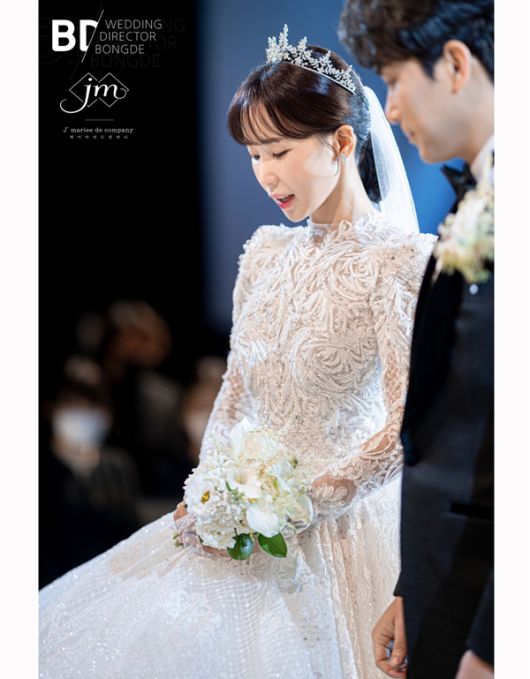 공개된 화보에는 가족과 친·인척, 지인들의 축복을 받으며 행복한 결혼식을 올리는 초아 부부의 모습이 담겼다. 초아는 단아하면서도 수줍은 신부로 눈부신 웨딩드레스 자태를 뽐내 시선을 강탈했다.