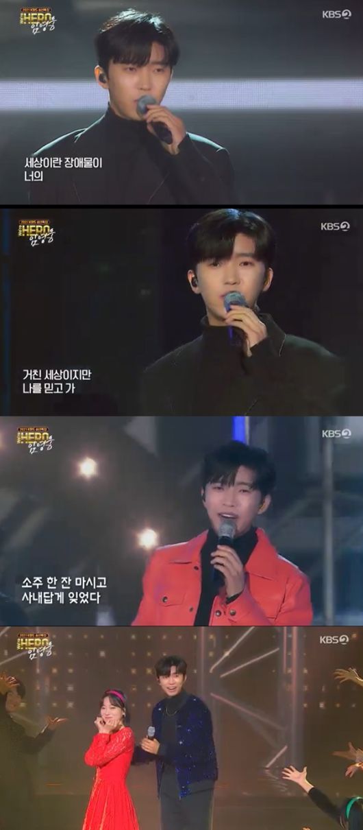임영웅은 "일상 속의 진정한 영웅인 여러분들, 우리 모두가 함께 하는 시간이 어느 때보다 행복한 시간이 될 수 있도록 열심히 노래하겠다"는 다짐을 전하며 무대를 이어갔다.