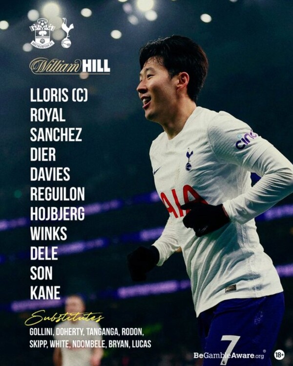 콘테 감독이 이끄는 토트넘은 해리 케인, 손흥민, 델리 알리, 윙크스, 호이비에르, 레길론, 벤 데이비스, 다이어, 산체스, 에메르송, 요리스가 선발로 나선다.