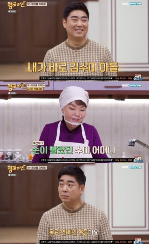 28일 오후 방송된 케이블채널 MBC에브리원 '맘마미안'에는 배우 김수미와 정명호 모자가 출연했다. 정명호는 셰프 군단이 만든 음식 사이에서 엄마의 손맛을 찾아 나섰다.