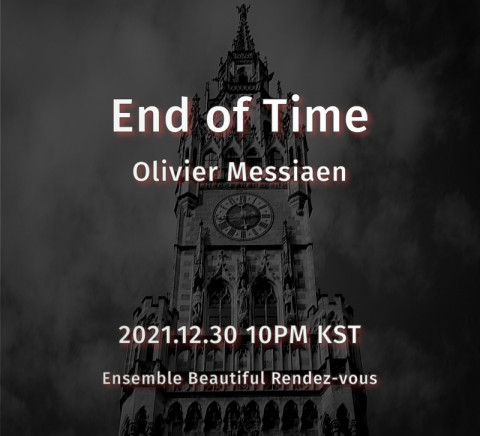[스타인뉴스 왕지원 인턴기자] 한국 클래식 주역들이 모인 앙상블 뷰티풀 랑데부(예술감독 김가람)가 제작한 프랑스 현대 음악 거장 올리비에 메시앙(Olivier Messiaen)의 실내악 대작 '시간의 종말(End of Time)' 뮤직비디오가 한국 시각 12월 30일 밤 10시 앙상블 뷰티풀 랑데부 유튜브 채널을 통해 공개된다.