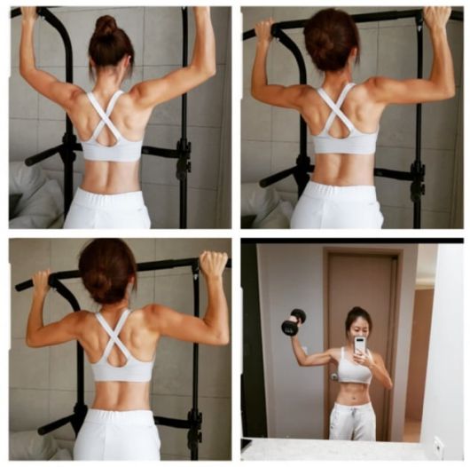 이와 함께 공개한 사진 속에는 운동복을 입고 집에서 등 근육 운동을 하고 있는 모습이 담겨있다. 이지현은 뿐만 아니라 팔, 복근까지 공개하며 건강미를 과시하고 있다.