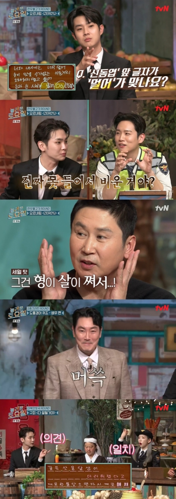 1일 오후 방송된 tvN 예능 프로그램 '놀라운 토요일'에는 영화 '경관의 피'의 배우 조진웅과 최우식이 출연해 노래 받아쓰기에 도전하는 모습이 그려졌다.