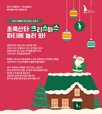 2021 초록산타 크리스마스 파티는 만성·희귀난치성 질환, 암 등을 가진 환아와 형제자매를 대상으로 한 ‘2021 초록산타 상상학교 및 상상크루’의 후속 프로그램으로, 2020년 처음 진행된 ‘초록산타 상상학교의 특별한 크리스마스’에 이어 두 번째로 진행됐다. 이번에도 프로그램 참여를 희망하는 환아와 환아 가족들의 열렬한 성원에 힘입어 참가자 모집을 개시한 지 하루 만에 정원 90명이 넘는 접수로 조기 마감됐다.