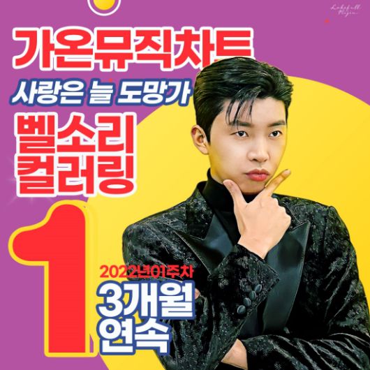 임영웅은 ‘사랑은 늘 도망가’로 벨소리, 컬러링차트 3개월 연속 1위를 유지하며 2관왕을 차지했다.
