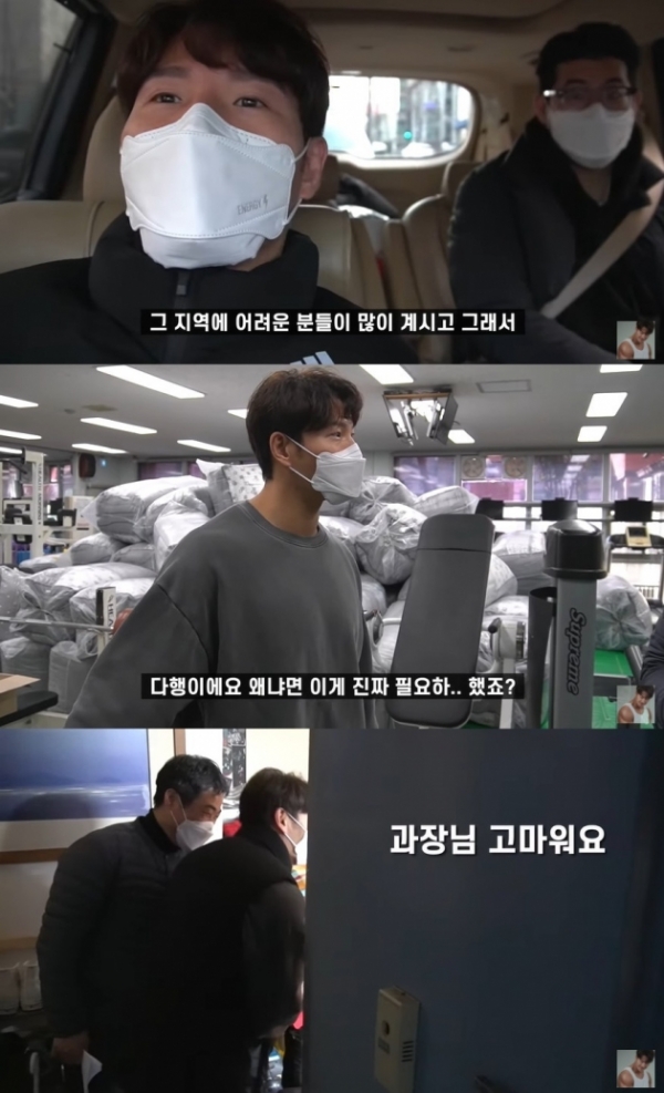 그렇게 김종국은 직접 복지관을 찾아 이불 390채, 패딩 43벌을 전달했다. 이후 그는 복지관 직원과 함께 기부를 받는 이들을 찾아 이불을 전달하며 훈훈함을 더했다.