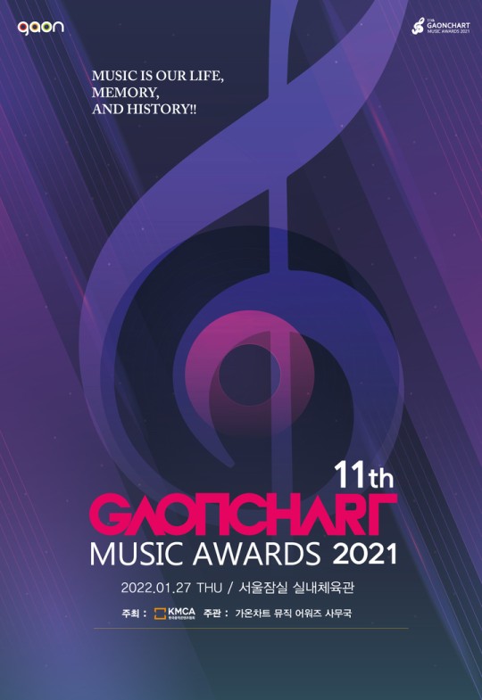 '가온차트 뮤직 어워즈'는 온라인 음악 플랫폼과 피지컬 앨범 유통사의 데이터를 합산·집계하는 '가온차트' 데이터를 기반으로 하는 대중음악 시상식으로, 올해로 11번째를 맞는 가온차트 뮤직 어워즈는 27일 유튜브 채널 'gaonchart' 와 '1theK (원더케이)', 카카오TV, 멜론에서 생중계 될 예정이다.