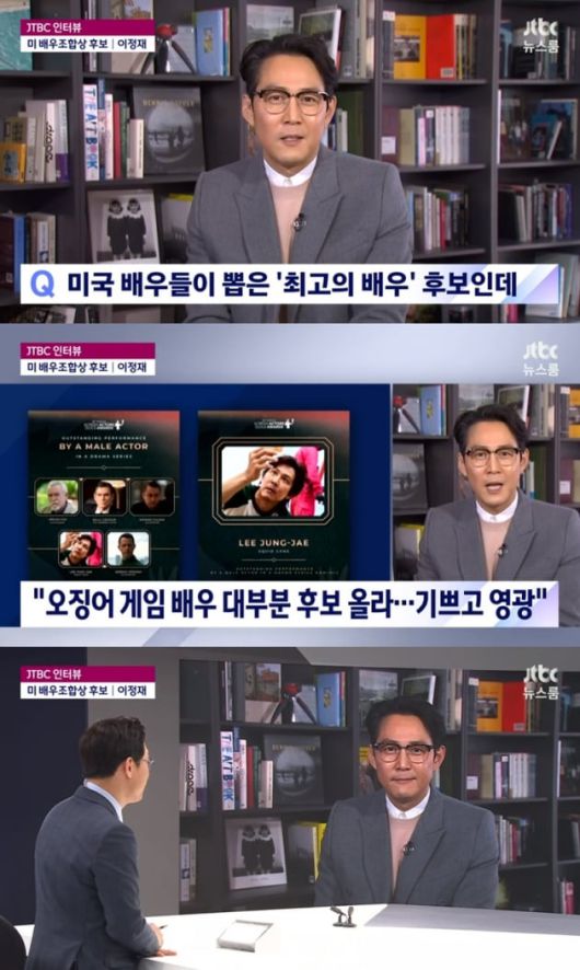 오대영 앵커는 "축하드린다. 미국배우조합상 후보에 올랐는데?"라고 축하했고, 이정재는 "영광스러운 일이고 나도 뉴스로만 접했던 시상식인데 너무나도 기쁘고 뜻깊은 일이다. 더구나 '오징어 게임'에 나온 배우들과 함께 앙상블 부문에도 후보에 오르고 정호연도 후보에 올랐다. 심지어 액션팀 앙상블까지 후보에 올라서 거의 전 배우들이 후보에 올라서 너무 기쁜 일이 아닐 수 없다"라고 기뻐했다.