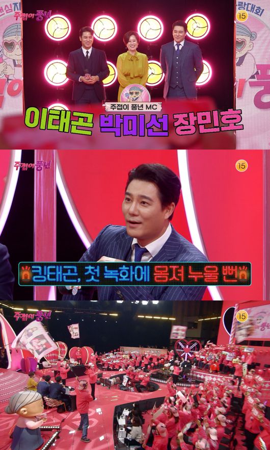 영상은 ‘주접이 풍년’을 이끌어갈 MC 이태곤, 박미선, 장민호가 스튜디오에 등장하는 모습으로 시작됐다. MC진은 핑크색 단체복을 맞춰 입고 깃발을 흔드는 깃발부대의 압도적인 포스에 놀라움과 감탄을 금치 못했다.