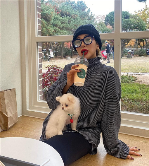 그녀는 17일 자신의 인스타그램에 두 장의 사진과 함께 "이 사진은 초중기였는데 이제는 29주 2일차"라는 글을 남겼다. 공개된 사진에서는 강아지를 무릎 위에 올려둔 자이언트핑크를 볼 수 있는데, 소멸할 것 같은 얼굴에 슬림한 자태로 음료를 마시며 여유로운 모습이었다.