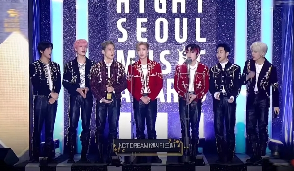 NCT 1드림은 23일 서울 고척 스카이돔에서 열린 시상식 '서울가요대상'에서 '최고 앨범상'을 받았다. NCT 드림은 작년 첫 정규 앨범 '핫소스'를 비롯해 누적 앨범 판매량을 300만 장을 넘겼다.