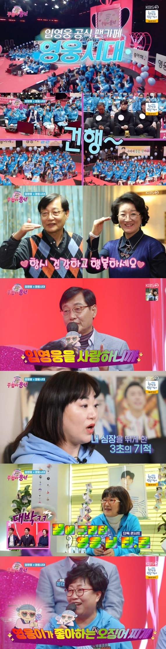 27일 오후 9시 30분에 방송된 KBS 2TV 예능 프로그램 '주접이 풍년'에서는 가수 임영웅의 공식 팬카페 '영웅시대'가 주접단으로 함께했다.