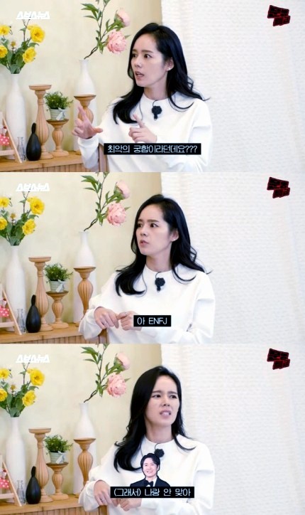 또한 성격분석 테스트 ‘ESTJ’라는 한가인을 보며 재재는 “연예인 중 데프콘도 있다”고 하자 가인은 “만나보고 싶다”며 반가워했다. 그러면서 “신랑과 해봤는데 최악의 궁합, 빨간불이더라”면서 “남편은 ENFJ다 , 선량한 친구 나랑 안 맞는다”고 해 폭소하게 했다.