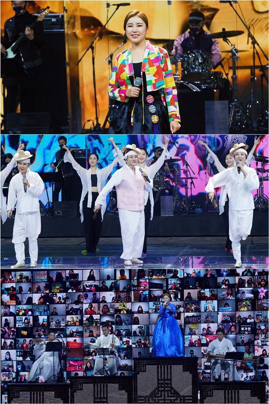 최근 진행된 녹화는 전통 국악으로 구성된 1부와 트로트와 국악을 접목한 2부로 나뉘어 펼쳐졌다. 창극 ‘춘향가’, ‘남도민요’, ‘진도씻김굿’, 판소리 ‘인당수 빠지는 대목’을 비롯해 ‘비나리’, ‘박타령’ 등 송가인이 열창하는 다양한 국악을 만나볼 수 있다.
