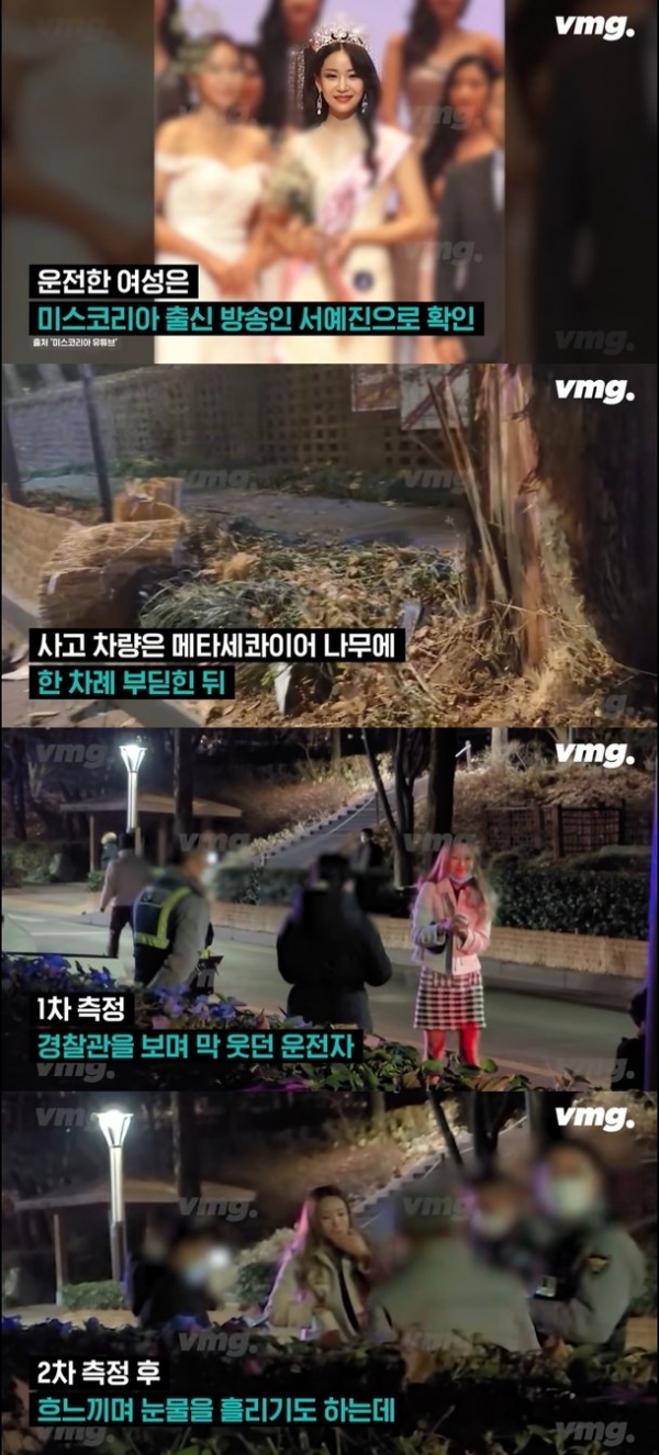 [스타인뉴스 이상백 기자] 미스코리아 출신 방송인 서예진(25)이 만취해 음주운전을 하다가 가로수를 두 차례 들이받는 사고를 냈다.