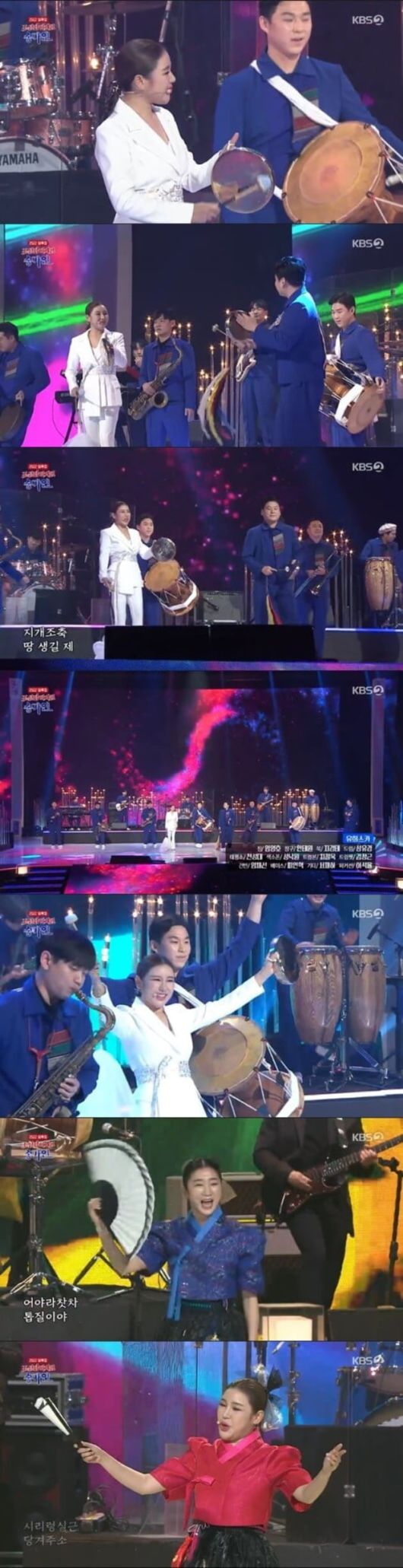 뿐만 아니라 유희스카와 억스(AUX)와의 콜라보로 흥겨움을 선사하기도 했다. 무대 말미에는 신승태, 김준수, 남상일, 이미리, 억스 (AUX)와 함께 ‘전국 팔도 아리랑’을 열창하며 대미를 장식했다.