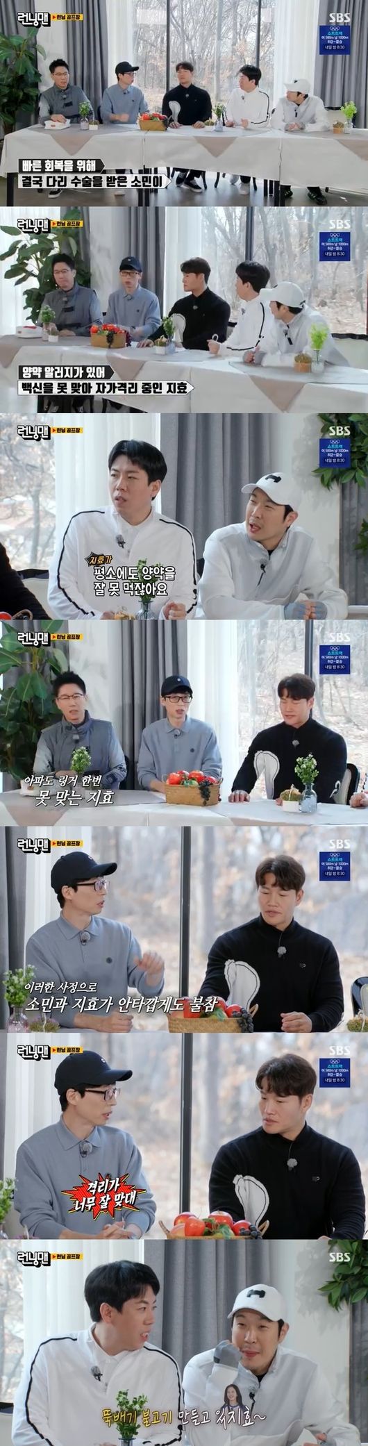 이날 유재석은 “소민이는 수술을 해서 오늘 퇴원할 거다. 지효는 백신을 못 맞아서 자가격리 중이다”라며 다리 수술로 인해 참석하지 못한 전소민과 자가 격리 중인 송지효에 대해 언급했다.