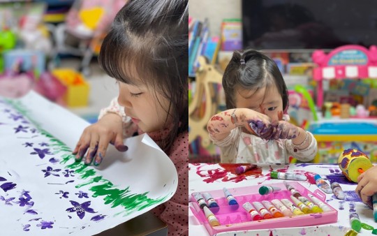 공개된 사진에는 집에서 물감놀이를 즐기는 라니, 소울 자매의 모습이 담겨 있다.