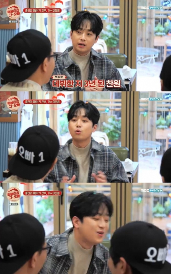 15일 오후 8시30분 처음 방송된 MBC Every1 '떡볶이집 그 오빠'에는 이찬원이 출연해 '미스터트롯'에 출연해 대박을 터트린 일대기를 소개했다.