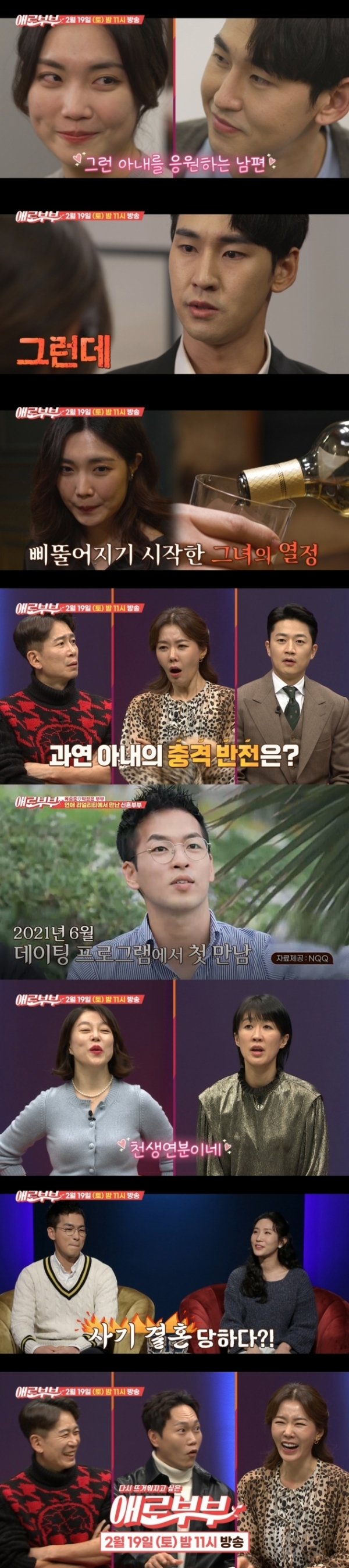 오는 19일 방송되는 '애로부부' 예고편에서는 연기에 대한 오랜 꿈을 안고 뜨거운 열정을 가진 여배우 아내와 그런 아내를 응원하는 남편이 등장한다.