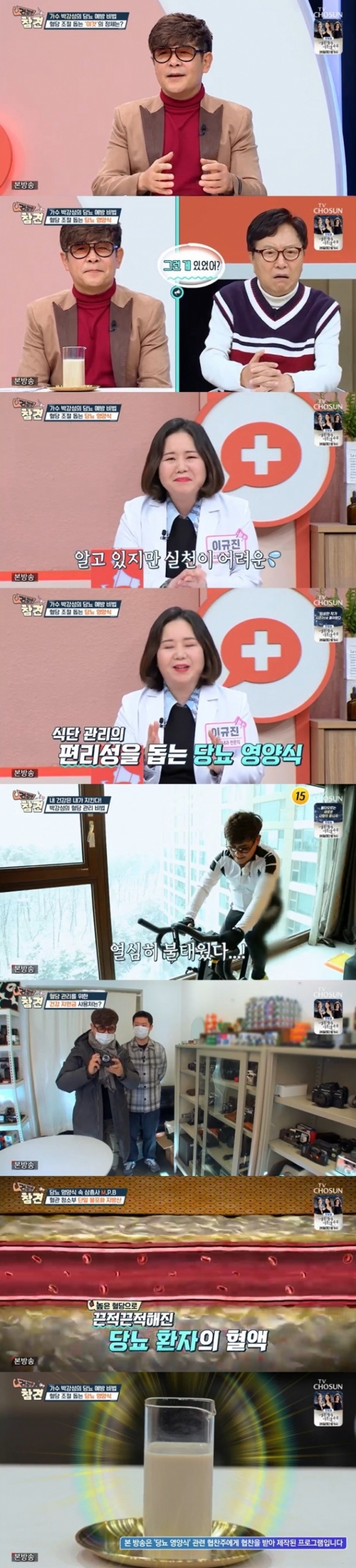 18일 오후 7시 방송된 TV조선 '건강한 참견'에는 당뇨 전 단계 진단을 받은 가수 박강성이 출연, 당 조절에 나선 하루 일과를 공개했다.