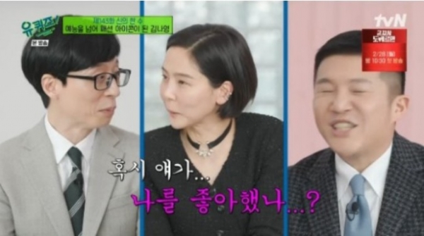 [스타인뉴스 이채원 기자]  '유퀴즈'에서 방송인 김나영이 연인 마이큐를 언급했다.