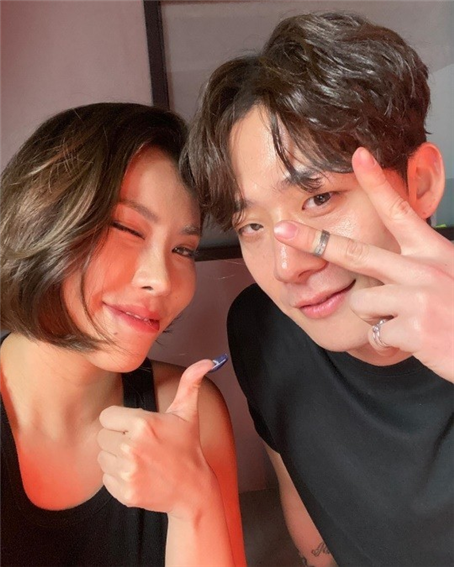 공개된 사진 속 가비는 손으로 브이를 그리기도 하고, 윙크도 하며 여유로움을 뽐냈고, 차현승은 손으로 브이를 그리며 카메라를 응시하고 있다.