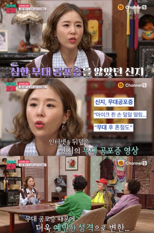 신지는 정신과 상담을 받아보고 신경안정제를 한번 복용해 보기도 했지만 무대 공포증을 극복하지 못했고, 이어 실수에 대한 두려움이 마음에 크게 자리했음을 고백했다. 김영옥은 “’실수하면 어때’라고 생각해야 한다”라며 다독였다. 나문희는 “자기를 많이 위로해주고 사랑해주지 어쩜 그렇게 못살게 구니”라며 안타까워했다. 신지의 마음을 백 번도 더 공감하던 박정수는 “자기 생활의 모든 것을 잘 해나가고 있으니 자기 자신에 대한 예민함만 내려놓자. 실수해도 괜찮다”라며 응원했다. 신지는 자신이 스스로를 괴롭힘을 인정하고 할매들의 조언을 귀담아들으며 힘을 받았다.